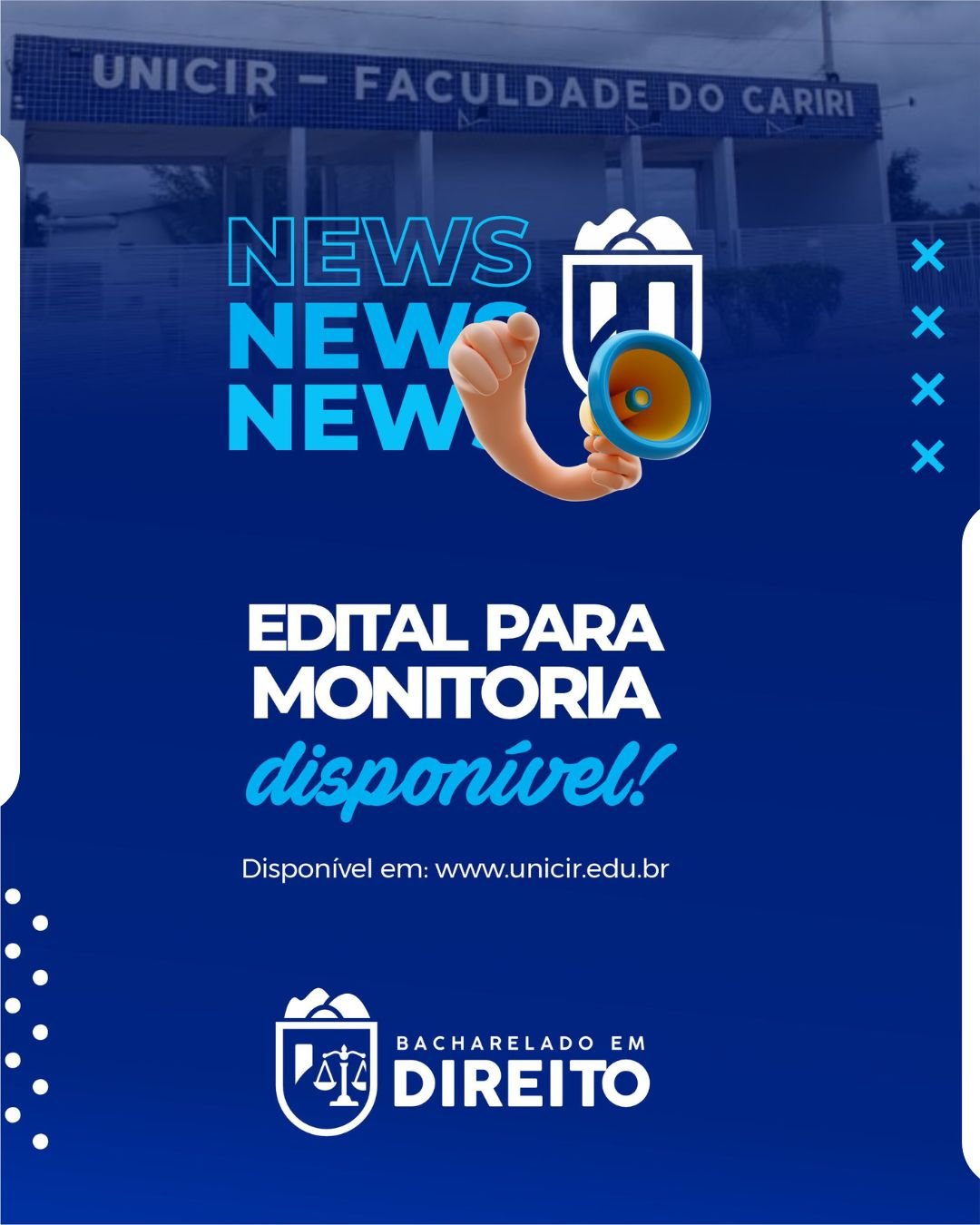📢 EDITAL DE MONITORIA 1 – DIREITO 2026.1 ⚖️📚 A Coordenação do Curso de Direito da UNICIR - Faculdade do Cariri – Sumé/PB informa a atualização do processo seletivo de monitoria para o semestre 2026.1. 📝 Inscrições: mediante preenchimento do formulário online.🔗 Formulário: