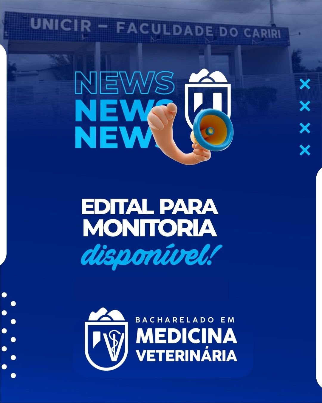 📚🐾 PROGRAMA DE MONITORIA – MEDICINA VETERINÁRIA 2026.1 🐾📚A Coordenação do Curso de Medicina Veterinária da UNICIR – Faculdade do Cariri (Sumé/PB) torna público o Edital 01 para seleção de Monitoria 2026.1!🎓✨ Uma oportunidade incrível para fortalecer seu currículo, aprofundar